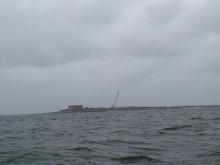 Le 26 septembre, il faut bien repartir, la météo n’est pas très favorable, le vent est pile dans le nez, mais devrait tourner. En effet après une journée au moteur, nous pouvons enfin avancer à la voile et décidons de tirer direct vers Virginia Beach. Nous avions envie de nous arrêter à Ocean City, seule escale sûre, car la côte du Delaware est truffée de bancs de sable. L’ICW n’y est pas très bien maintenu, si bien qu’il risque d’être un peu ensablé, ainsi que les rares « Inlet » de cette portion de côte sauvage. Nous profitons du vent et, après une belle nuit tranquille à la voile, nous arrivons le 27 en milieu de journée à l’entrée de « Chesapeake Bay ». ! L’entrée de « Chesapeake Bay » est barrée par un très long pont qui relie les deux rives. En deux endroits la route plonge sous l’eau pour passer dans des tunnels, ce qui libère des chenaux d’entrée pour les navires.