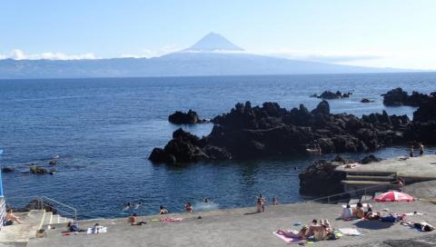 Au centre de l’île s’élève le Pico de Alto, volcan en sommeil, encore bien pointu avec ses 2350 mètres de hauteur, dont les dernières éruptions remontent aux 16eme et 18eme siècles. L’île en garde encore une couleur noire dominante. Outre l’élevage omniprésent dans ces iles, la principale activité de Pico est la vigne. Elle y est cultivée de façon originale. Un véritable réseau de murs de pierres volcaniques noires entoure les pieds de vigne, leur apportant chaleur et abri. On a du mal à imaginer le nombre d’heure de travail que représente la construction de ces innombrables murs. Le vin de Pico eut, les siècles derniers, une renommée internationale, il reste de nos jours assez confidentiel.