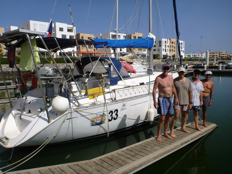 Alain et Marie-Hélène ont repris le bateau à Cartagena pour l'amener à Rabat. Ils ont trouvé la côte espagnole peu agréable et après la Linea, tout à côté de Gibraltar, ils ont filé direct vers Rabat. Le passage de Gibraltar a été épique comme il se doit : la météo annonçait 22 nœuds mais des rafales à 38 nœuds ont poussé Sara vers son record de vitesse, plus de 10 nœuds !