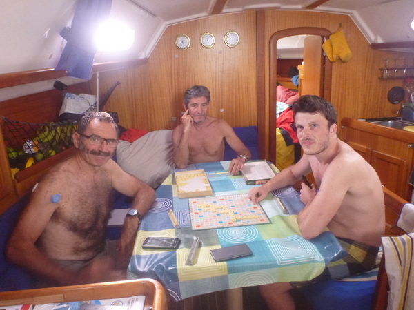 Samedi matin : tout le monde est fatigué et la manœuvre de spi foire. Tant pis, on se traîne aujourd'hui mais on se repose.