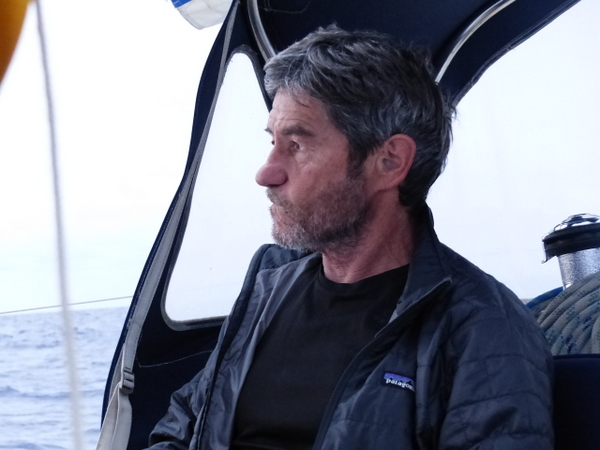 L'alternance des quarts commence à rythmer la traversée. La grosse houle perturbe les estomacs. Pas celui d'Alain qui depuis notre départ n'a pas quitté les lunettes magiques qui soignent le mal de mer, un instrument aussi seyant qu'efficace !