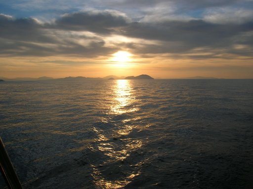 Surprise du départ, toujours à l'est de Malte, une véritable armada de gros bateaux de pêche, concentrés sur quelques miles. Nous en comptons plus de vingt. Dans la nuit, on pourrait prendre cela pour une côte, tellement c'est illuminé. Il faudra que Thalassa et Pernoud nous explique cette concentration à cet endroit. J'ai remonté ma ligne avec la tombée du jour. De toute façon, avec ce nombre de bateaux, ils ne vont même pas me laisser une anchois !
