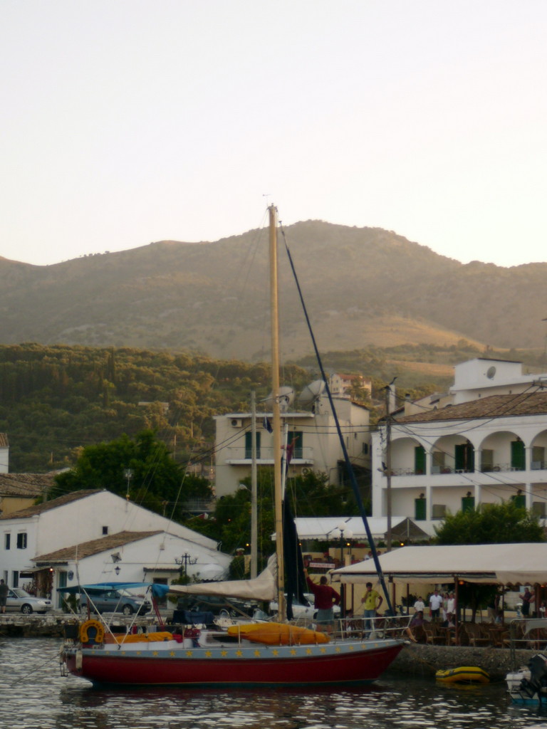 Nous regardons le programme compatible avec le temps qu'il nous reste. 12H00, direction le port de Kassiopi où nous arrivons à 16h30. Amarrage sur ancre. Les 50 mètres de chaîne y passent. Juste ! Le temps de faire quelques courses dans le village.