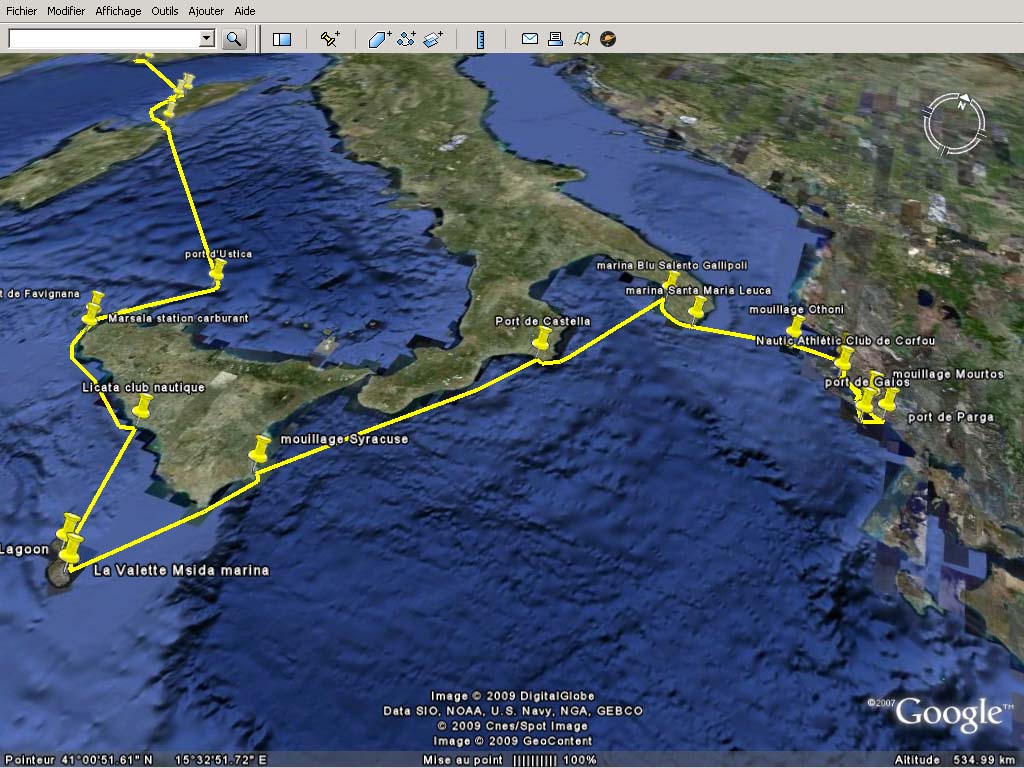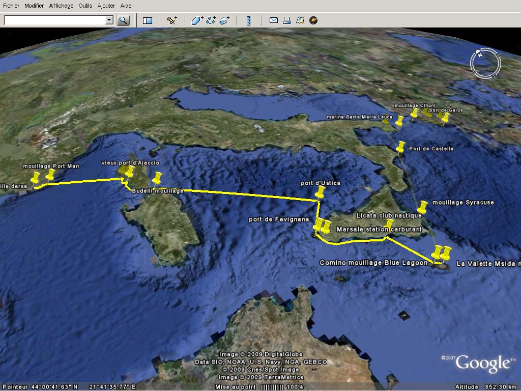 Après une journée passée à se préparer, nous voici enfin parti. D'abord un petit mouillage à l'est de l'île de Malte, le temps de manger un morceau, puis départ vers la pointe sud de la Sicile.