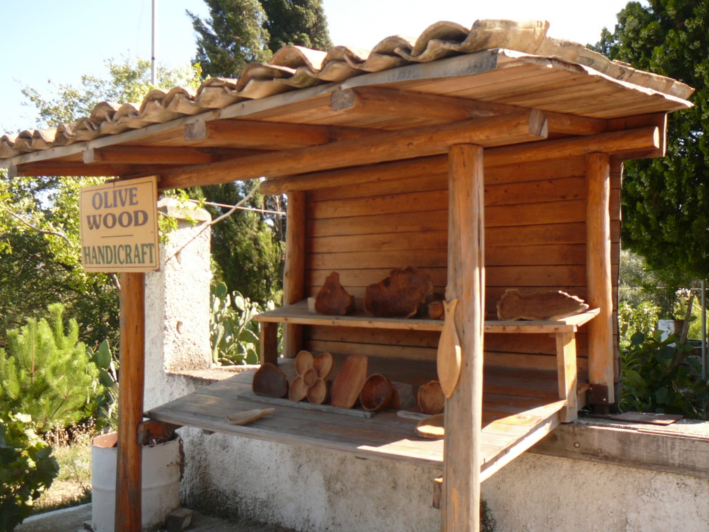 qui vendait des articles en bois d’olivier, sous un abri fait en cyprès...