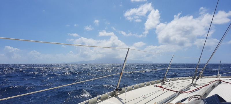 C'est donc au près et en tirant des bords contre l'alizé de l'océan pacifique que nous allons naviguer. 20 à 30 nœuds de vent, grosse houle, bateau gîté vers l’archipel des Tuamutu et celui des Marquises. Le paradis, ça se mérite.