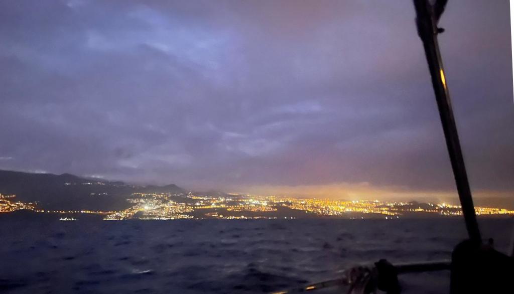 70 miles que nous décidons de faire de nuit, entièrement au près dans 15 à 20 nœuds de vent. Cela permet de tester la cohésion de l’équipage avant la semaine de navigation qui nous amènera au Cap Vert. L’équipage est au top ! Eric, Nadine et Anne sont des marins très expérimentés et le capitaine, pourtant bavard et à l’esprit critique, ne trouve rien à dire dans le briefing fait à l’arrivée. Anne et Eric sont beaucoup plus bavards sur le sujet.