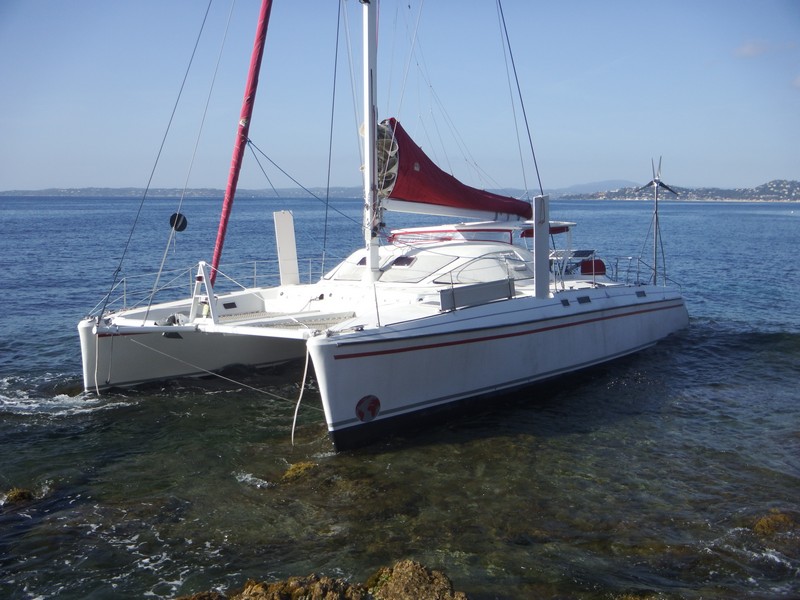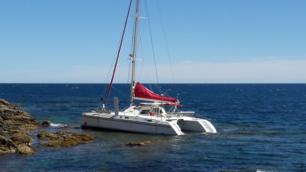 22 avril : en fin de journée arrivent simultanément plusieurs messages : alerte par SMS de la balise satellite indiquant une sortie du périmètre de surveillance, appels de la Gendarmerie maritime et de la Capitainerie des Issambres. Sur place, bien qu'étant prévenu, le spectacle est glaçant. Shrubb est posé sur des rochers plats, stable, sans dégât apparent. Les amarres sont dans l'eau, on ne peut en voir plus.