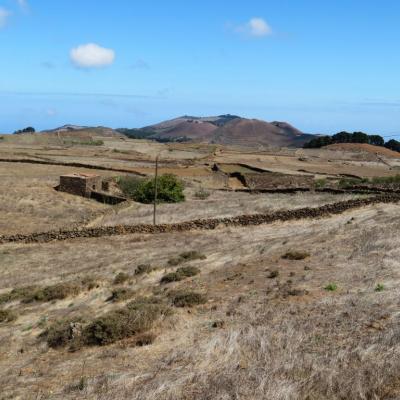 Sur notre chemin , le paysage est très aride , de petits champs entourés de murs de pierres de laves en font le décor .
