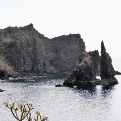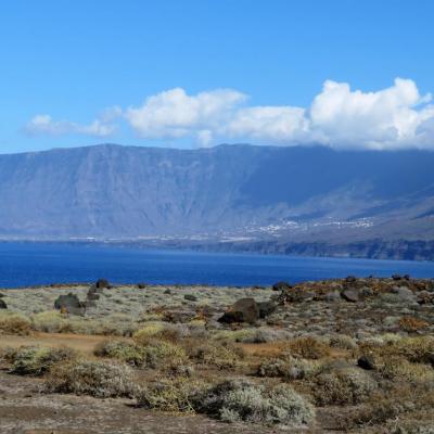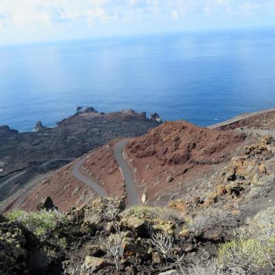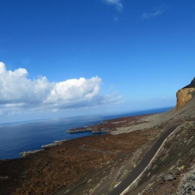 Plus au Sud du port , une route cul de sac mène à Las Playas , un paysage sauvage qui laisse place à l'immensité des falaises , nous apercevons des chèvres . Il faut savoir que le lait des chèvres d'El Hierro donne les fromages les plus réputés des Canaries . C'est l'île des Canaries qui a conservé le plus important volet agricole par rapport à sa population .