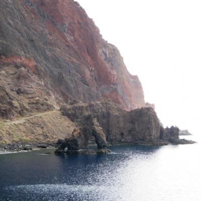 Le Sud-Est , au-dessus du port de l'Estaca , le village de Tamaduste que l'on a vu en premier de la mer , abrite une crique de rochers de lave très bien aménagée pour laisser place à la détente . Le contraste de ses maisons blanches avec la roche noire basaltique est saisissant et nous rappelle un peu Lanzarote .