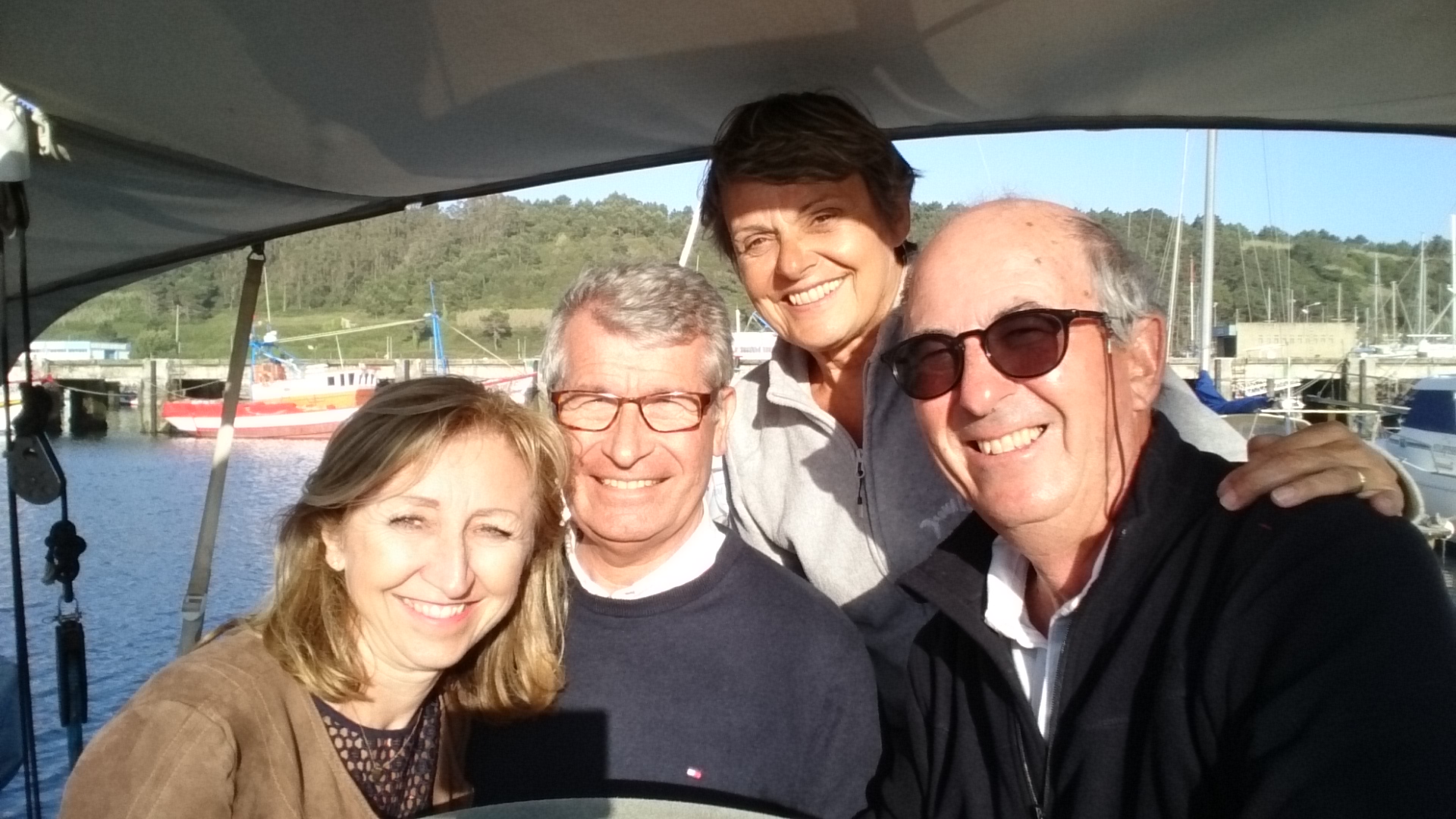 Au moment de quitter le bateau, nous avons la surprise de la visite des Caroff. En vacances, ils suivaient notre blog et nous ont retrouvés. Petit apéritif à bord, photo bien sur. Ils nous déposent dans Nazaré mais ne peuvent dîner avec nous car ils doivent rejoindre leur hôtel. Dommage mais leur passage nous a fait vraiment très plaisir.