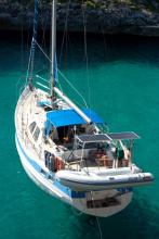 A mon sens, ce bateau est une merveille et je vais verser une larme quand il sera vendu. il est securisant, costaud, pratique et joli. Il passe tres bien les vagues avec ses 15 tonnes et il n'est pas du tout pataud. Un voilier lourd est un enorme avantage en grande croisiere car on peut le charger sans alterer ses performances et son comportement. Nous avons fait la traverss Cap-Vert-Antigua en 14 jours, soit 6.35 noeuds de moyenne EN LIGNE DROITE, sachant que nous avons fait 24 heures de plein nord pour chercher le vent.