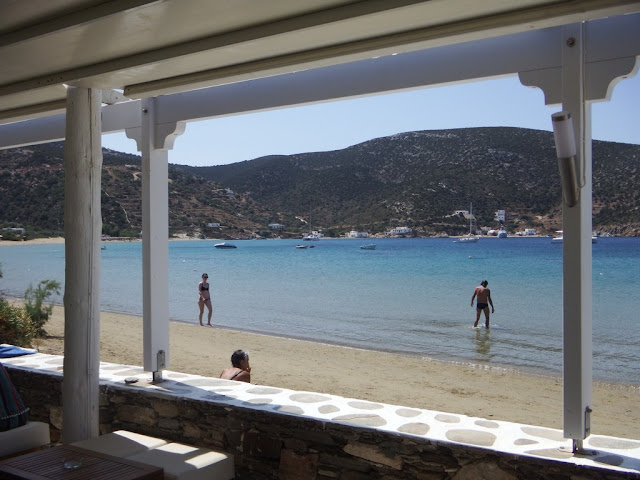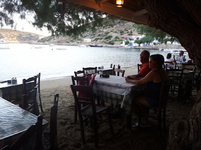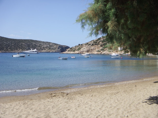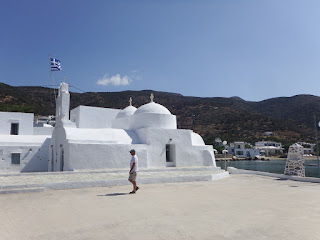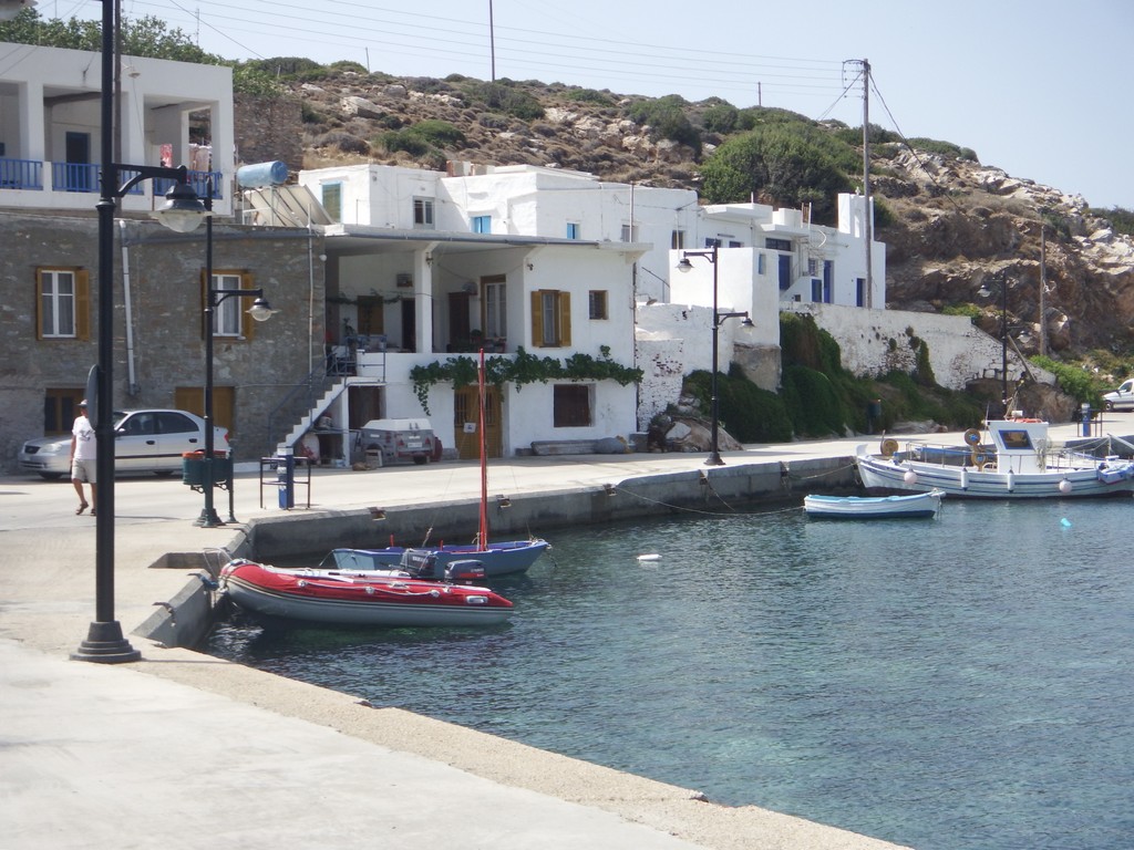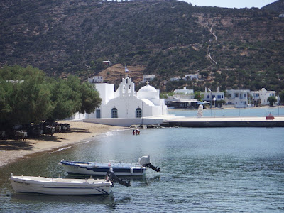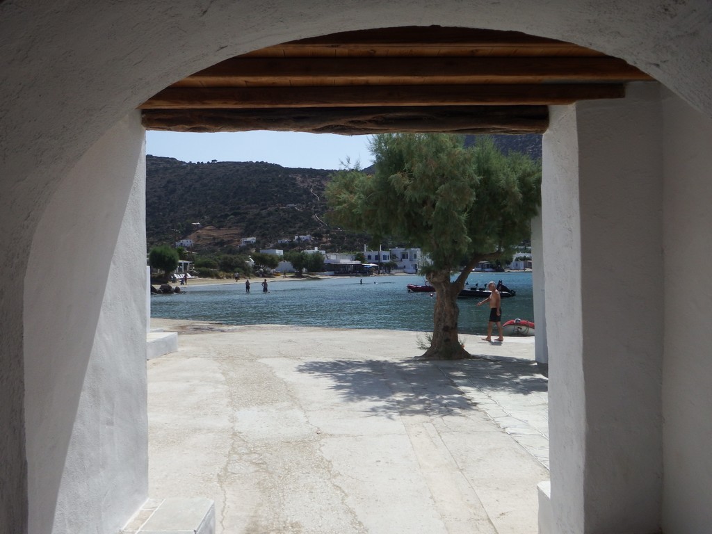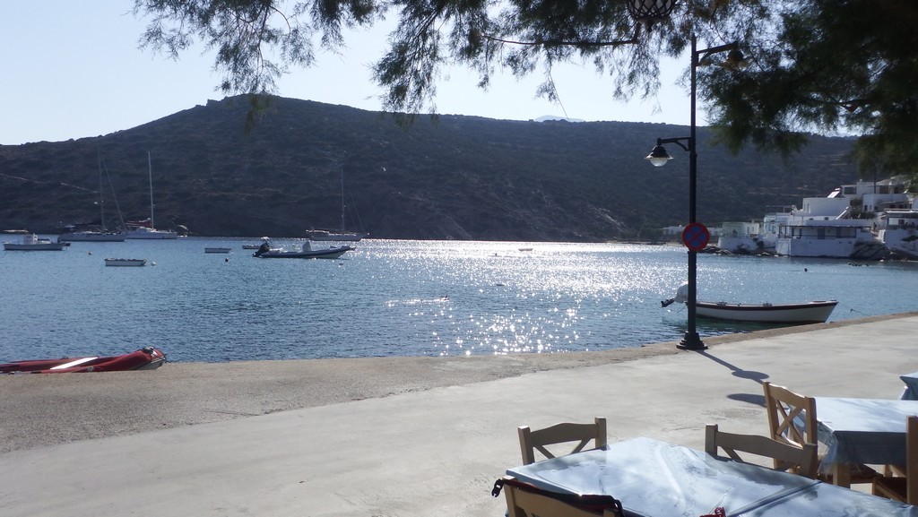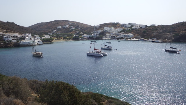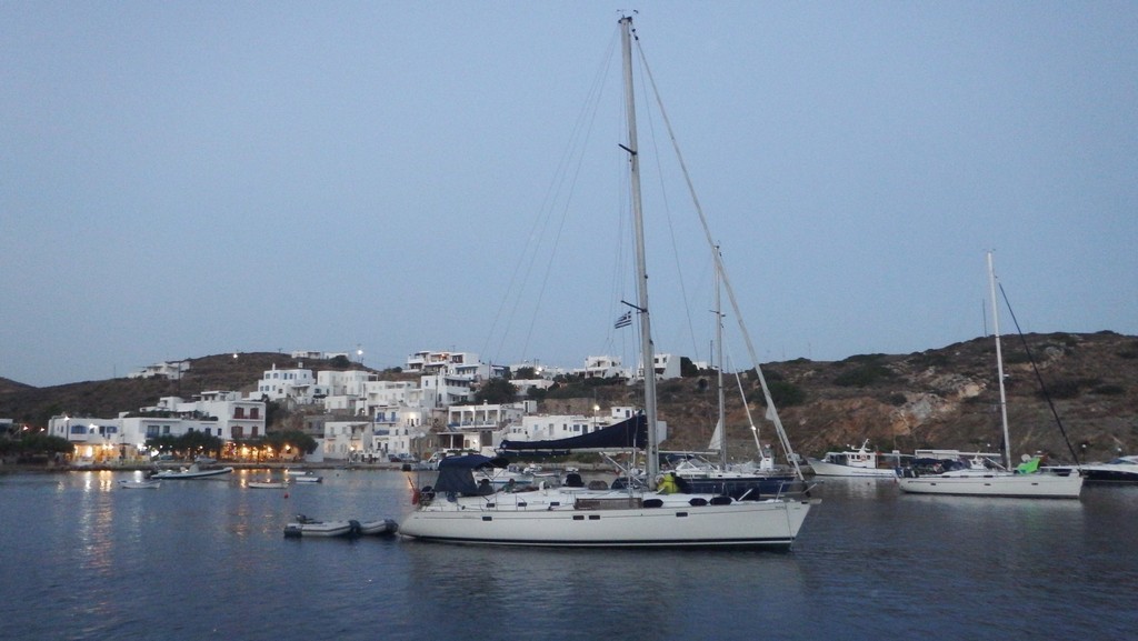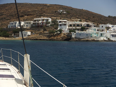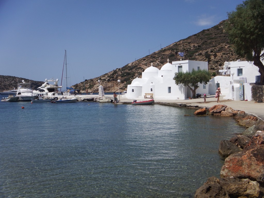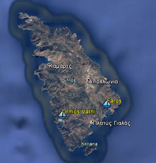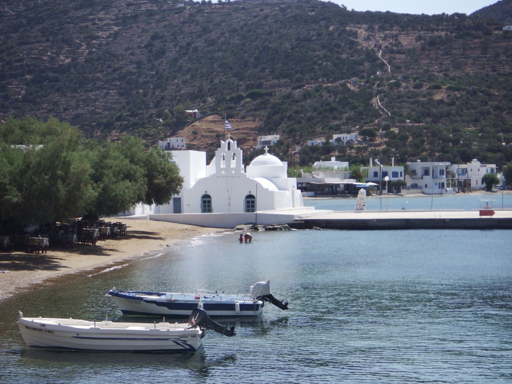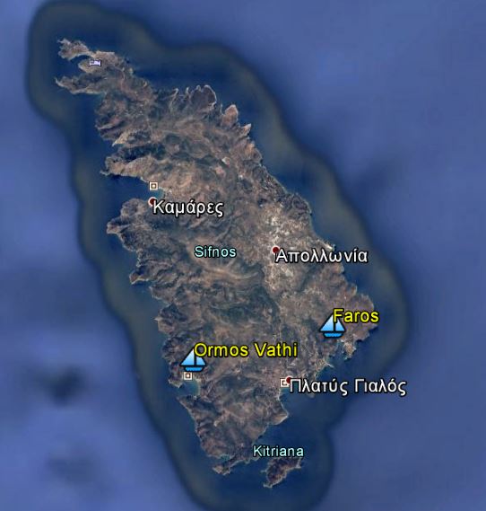 Nous arrivons devant le port de Faros, sur la côte est de Sifnos. La zone de mouillage n'est pas très large mais nous avons la chance qu'aucun bateau n'y soit en cette fin de matinée.