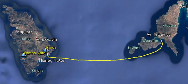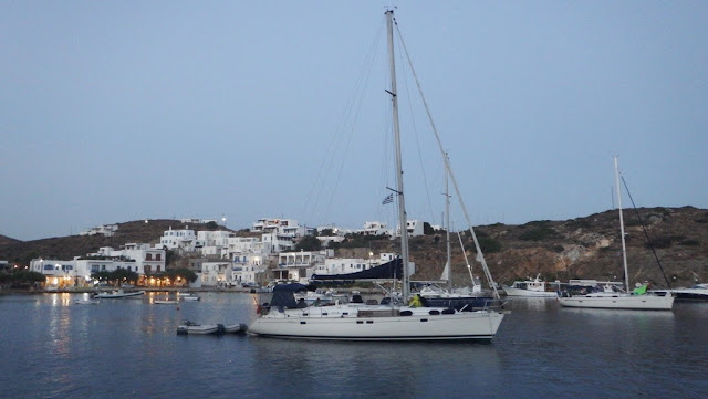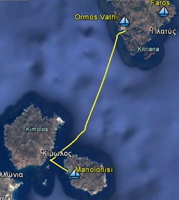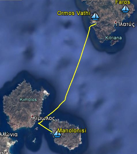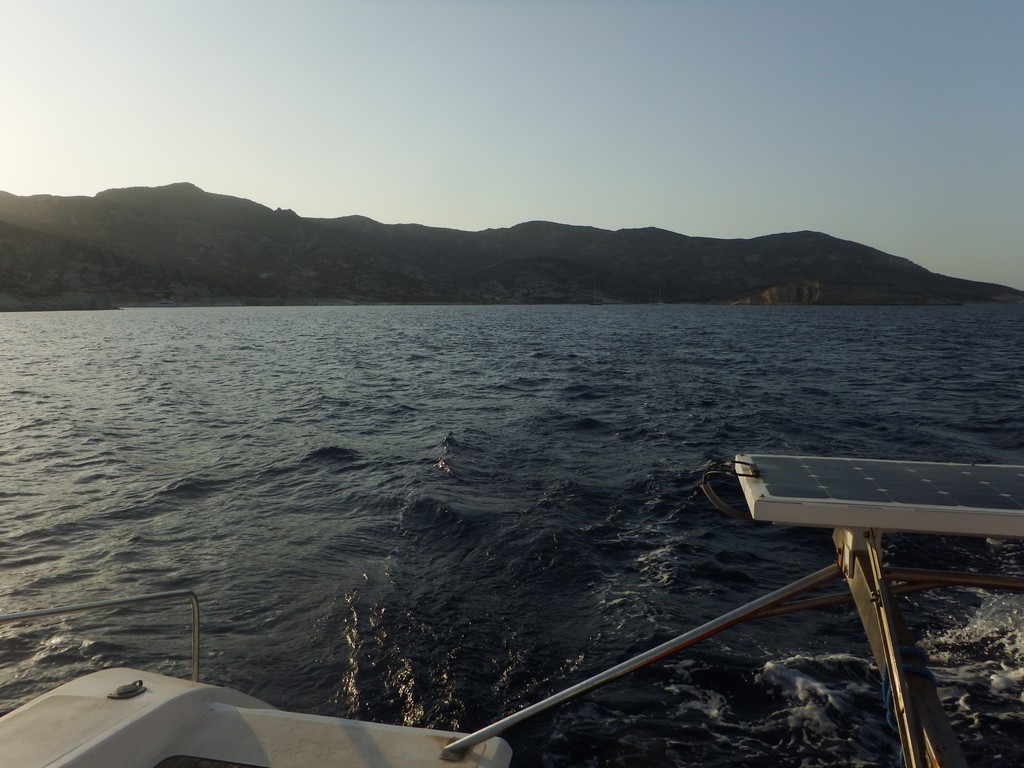 Nous levons l'ancre à Manolonisi (Poliagos) tôt le matin, pour affronter le meltem lorsqu'il est encore faible.