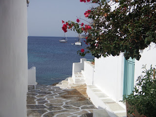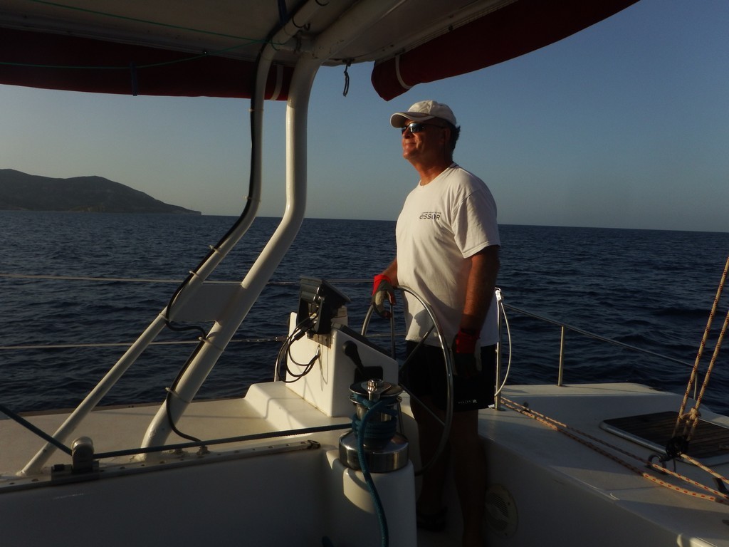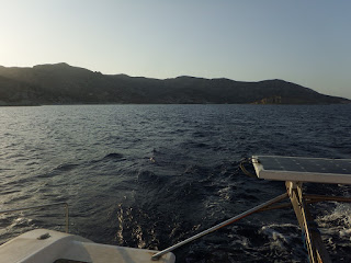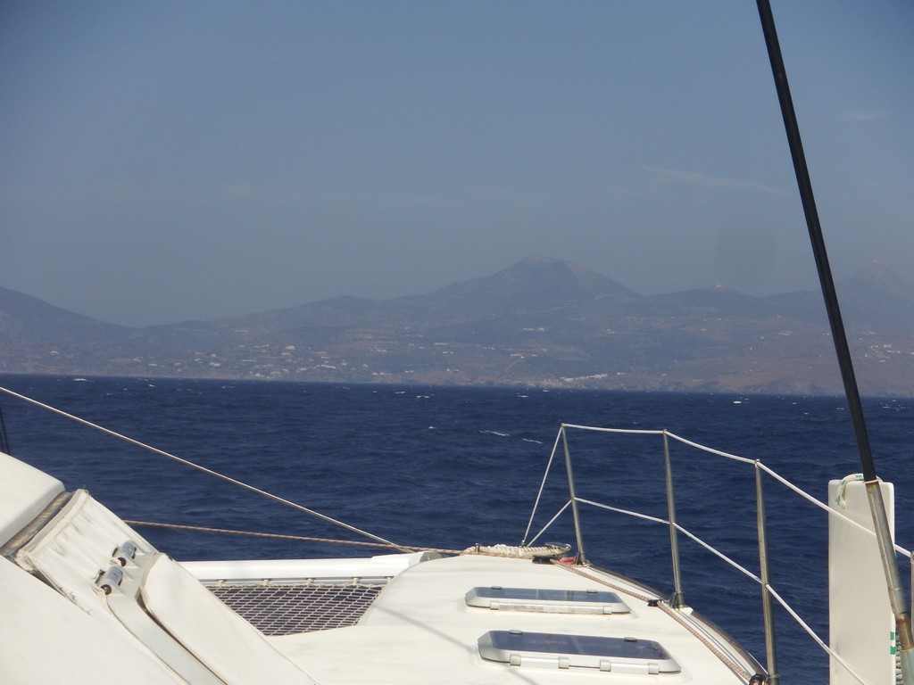 24 juin : après avoir quitté le mouillage de Despotiko, nous contournons l'île par le sud, cap à l'ouest pour 3 heures de traversée vent travers sous 10 nœuds de meltem.