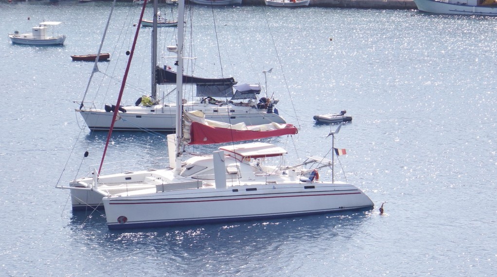 Nous jetons l'ancre par 4 m de fond de sable entre les zones herbeuses. Il est prévu de fortes rafales dans les heures à venir et je mets une bonne longueur de chaîne, dans la limite de l'espace disponible.