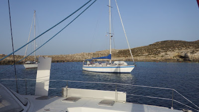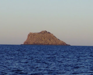 Nous avons parcouru 71 milles lorsque nous jetons l'ancre dans le joli mouillage d'Elafonisos, à la pointe sud-est du Péloponnèse, face à Cythère : 4 m de fond de sable de parfaite tenue sous le vent de nord-est qui se lève dans la nuit.
