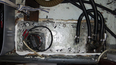 Nous trouvons également la clé d'une décharge persistante de la batterie moteur tribord : le ventilateur de cale bâbord ! Il est branché comme l'autre sur la batterie tribord, alors que celle-ci n'est plus chargée que par son moteur depuis l'installation du Sterling. Je peux donc prévoir quelques modifications à apporter au plan électrique.