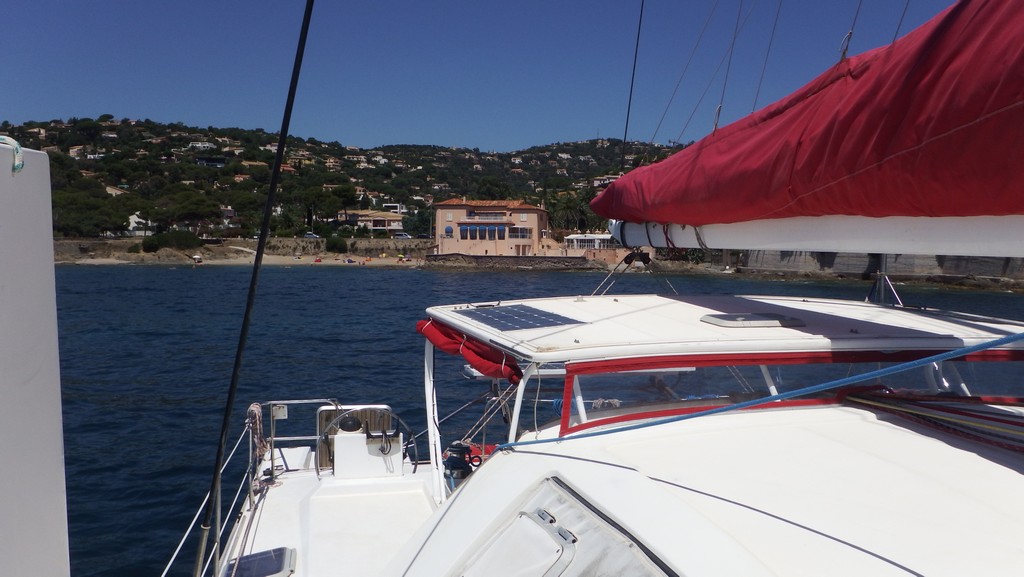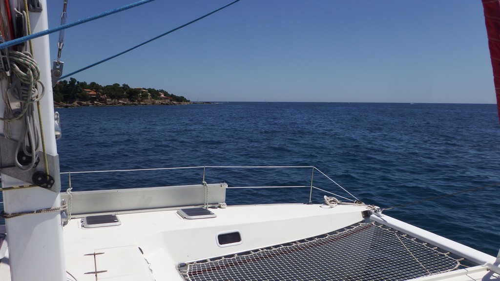Le vent tombe à 7 h à l'est des Îles d'Hyères et nous finissons les dernières heures au moteur.