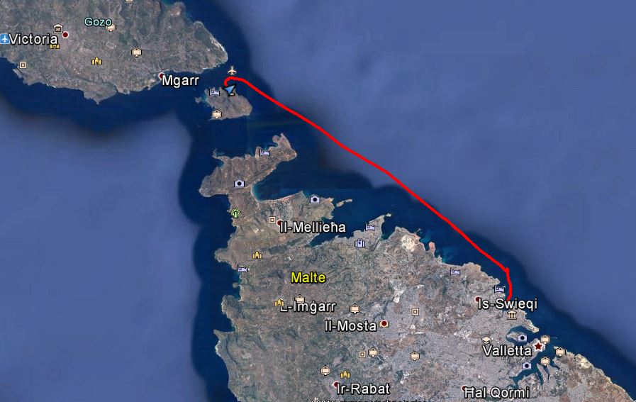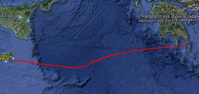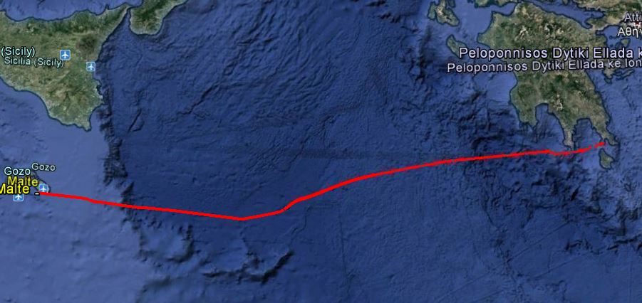 L'itinéraire prévu au départ passe par la côte de l'Attique et l'est d'Athènes, le sud du Péloponnèse, Malte, Sicile, et remontée au large des côtes de Sardaigne et de Corse.