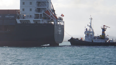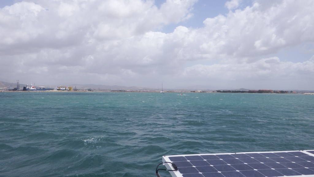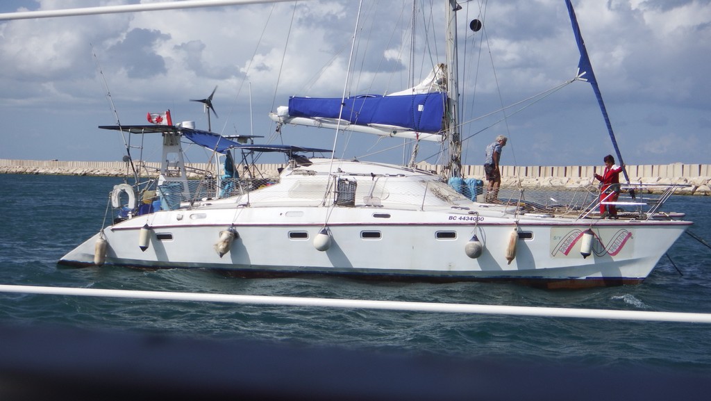 Autour de nous, un monocoque va se réfugier au port, et un catamaran canadien connaît des moments difficiles : il chasse à 2 reprises, prend des restes de filets dans son ancre, tente de mouiller de nouveau sans succès et se met à dériver vers l'autre côté de l'avant-port.