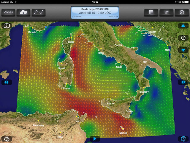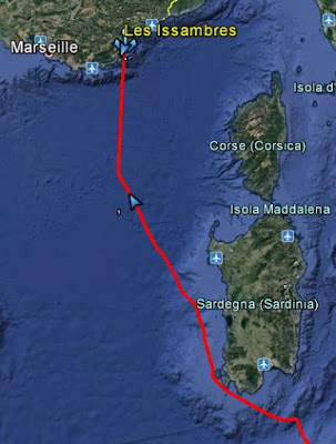 Autre contrariété : j'ai épuisé mon forfait Iridium, les derniers chargements de fichiers météo ayant été laborieux et gourmands en minutes satellite. Je capte les ultimes fichiers par 3G près des côtes. Nous ne sommes plus qu'à 48 heures de l'arrivée et nous captons désormais les bulletins du Crossmed par VHF. Un BMS de Météofrance s'achève d'ailleurs sur Provence : pour nous la voie est libre.