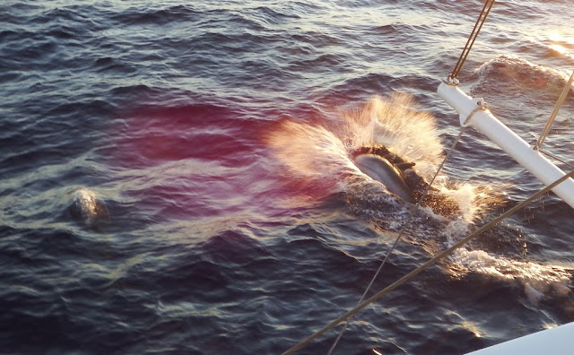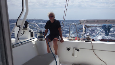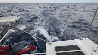 Le vent mollit dès la fin de la matinée et nous faisons route au moteur pour le déjeuner. Le vent reste à 6 nœuds de face, associé à un courant contraire d'1 nœud, et nous avançons à petite vitesse, 4,5 nœuds environ.