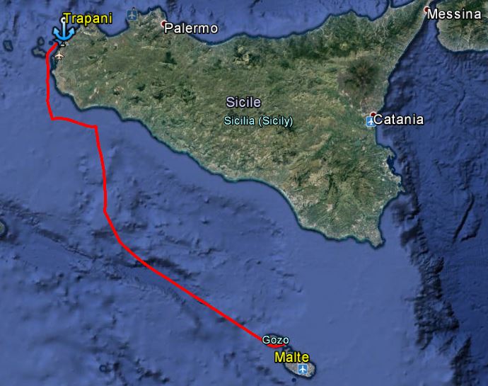 Nous atteignons Trapani en début d'après-midi. Nous avons parcouru 178 milles depuis Malte.