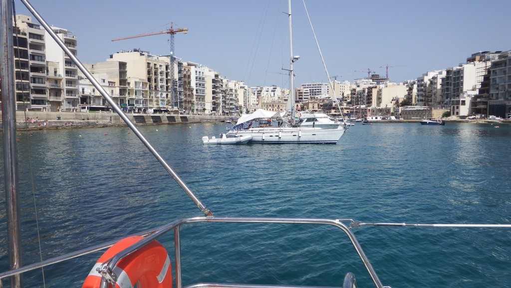 Je retrouve avec plaisir l'accueillante baie de St Julian's, au nord de La Valette, où les quelques bateaux présents nous laissent toute la place voulue pour mouiller par 8 m de fond de bonne tenue.