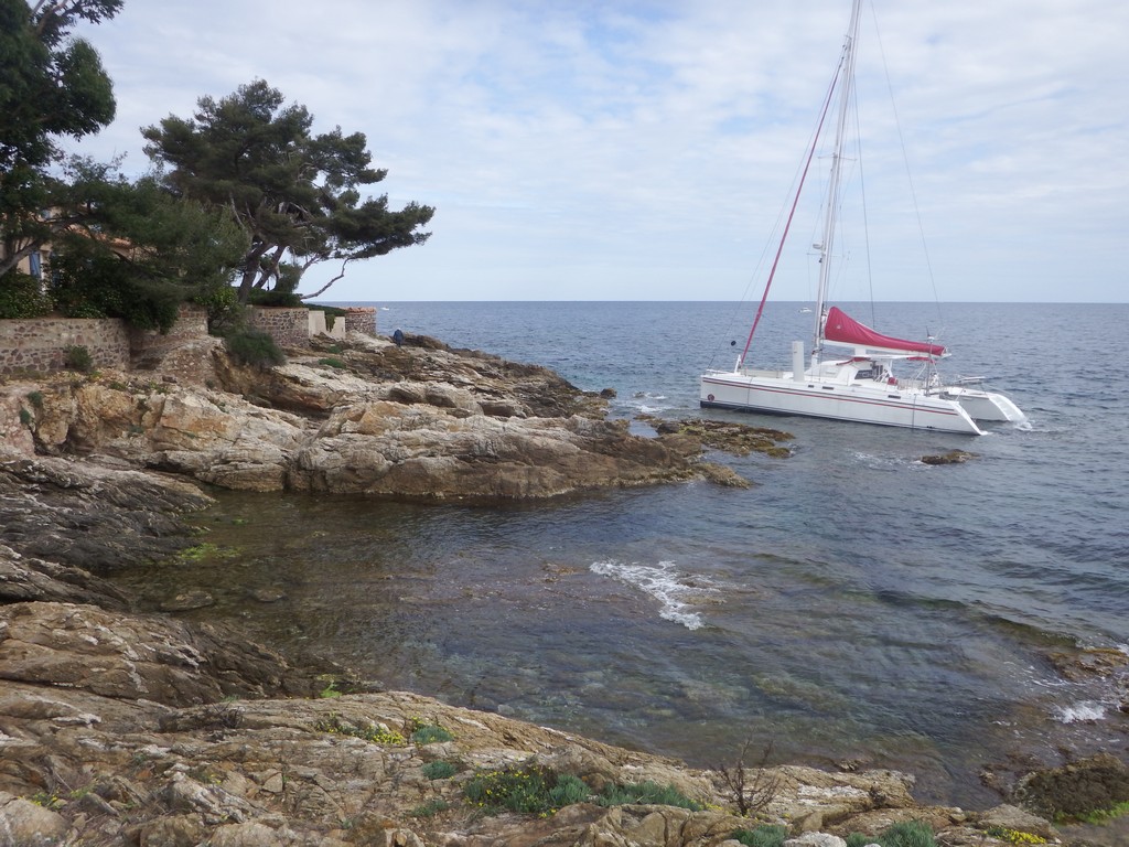 28 avril : heureusement il ne s'est rien passé après une nuit de fort mistral, rafales annoncées à 40 nœuds ; vent de terre, mer plate. Rien n'a bougé.