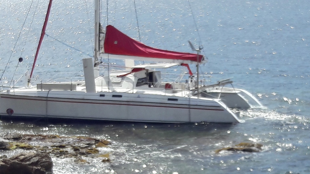 22 avril : en fin de journée arrivent simultanément plusieurs messages : alerte par SMS de la balise satellite indiquant une sortie du périmètre de surveillance, appels de la Gendarmerie maritime et de la Capitainerie des Issambres. Sur place, bien qu'étant prévenu, le spectacle est glaçant. Shrubb est posé sur des rochers plats, stable, sans dégât apparent. Les amarres sont dans l'eau, on ne peut en voir plus.