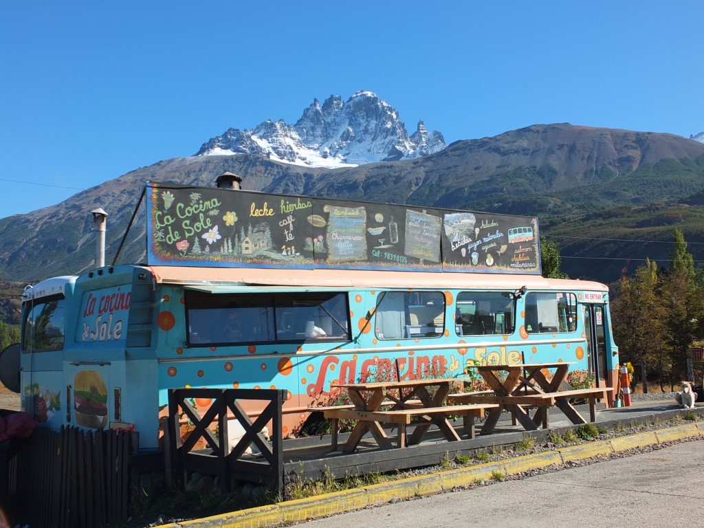 Un bus sert de restaurant (Cerro Castillo) sur la Carretera Austral