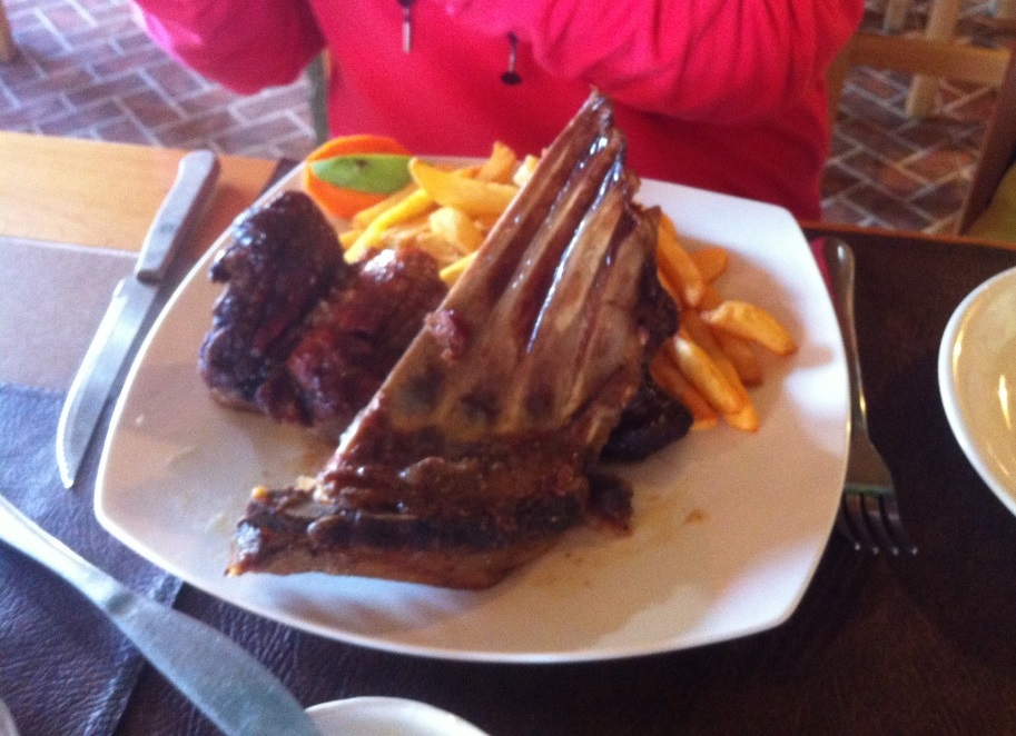 On ne peut pas aller en Patagonie sans manger du mouton : ci dessous un beau "costelar" avec son "jambonneau", mangé à Cochrane (Merci à Françoise pour son invitation !!)