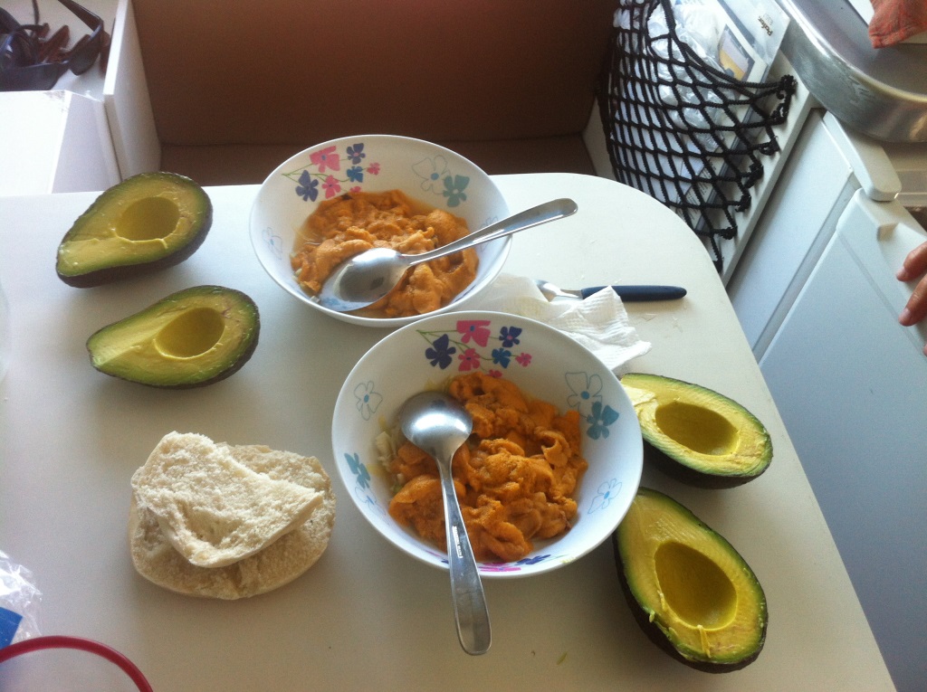 Nous voilà à la fin de notre voyage au Chili et sur la Carretera Australe, près de deux mois à découvrir les magnifiques paysages de cette région, et l'envie déjà d'y revenir en Novembre (nous rentrons en France le 16 Avril)...Depuis une semaine nous avons rejoint Chiloe, une ile qui a gardé sa "magie" malgré le développement d'une industrie du saumon un peu "intensive" .. Le Chiloe que nous avons connu il y a 20 ans a bien changé, mais on y mange encore de délicieux fruits de mer , et notamment les oursins (rien à voir avec les "langues d'oursins" de Mediterranée, ici avec 4 oursins on remplit deux bols !!) :